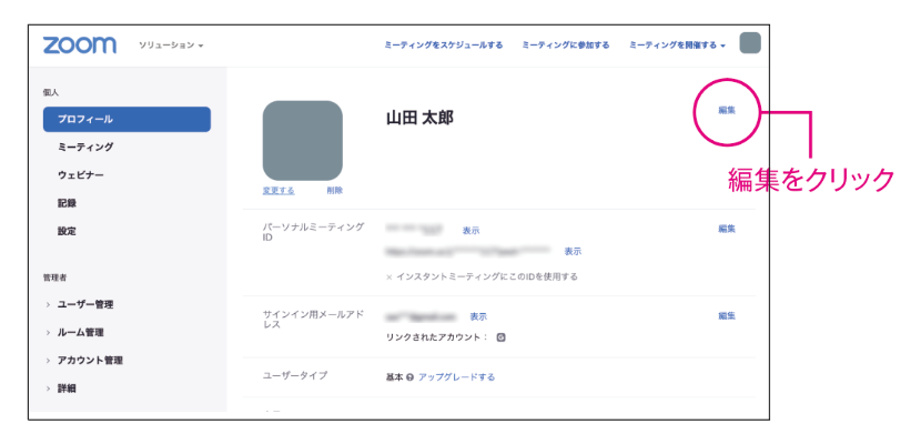 - プロフィールをクリックして、名前の横にある「編集」をクリックしてください。